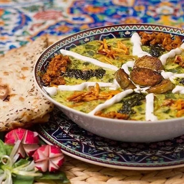 ist eine der ältesten persischen Speisen. Ein langsam gekochter, kräftiger Eintopf, der in unzähligen Varianten existiert, mit unterschiedlichen Hülsenfrüchten, Kräutern, Nudeln und Getreide.