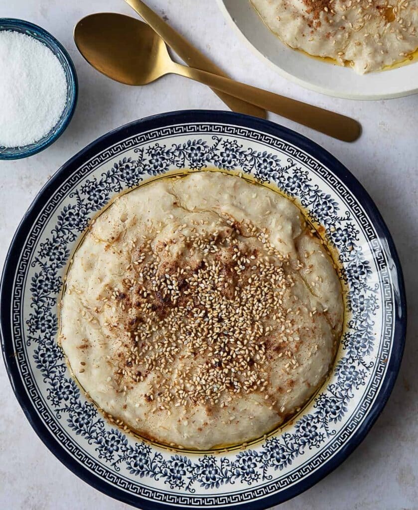 Weizengrütze oder geschroteter Weizen, Lammfleisch, Butter, Zimt, Zucker (optional).
